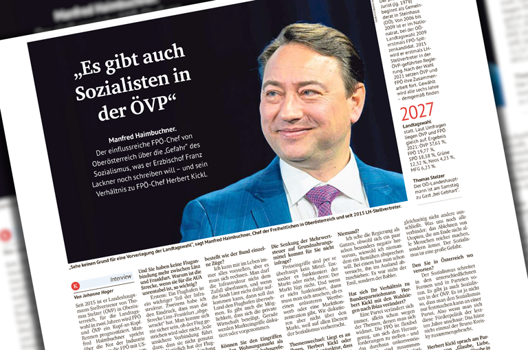 Der einflussreiche FPÖ-Chef von Oberösterreich über die „Gefahr“ des Sozialismus, was er Erzbischof Franz Lackner noch schreiben will – und sein Verhältnis zu FPÖ-Chef Herbert Kickl. Seit 2015 ist er Landeshauptmann-Stellvertreter von Thomas Stelzer (ÖVP) in Oberösterreich, für die Landtagswahl in zwei Jahren wird FPÖ und ÖVP ein Kopf-an-KopfRennen prognostiziert.…