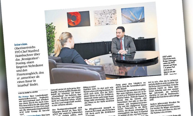 Das von Elisabeth Hofer geführte Interview ist am 30. Jänner 2026 in der Druckausgabe erschienen und auch unter https://www.diepresse.com/20526385/haimbuchner-mir-gefaellt-der-begriff-ausschaffung-besser zu finden.